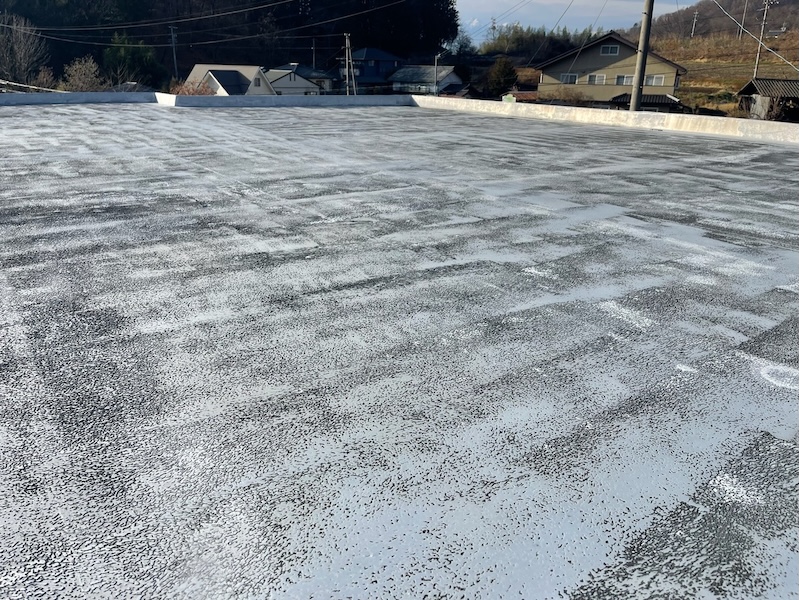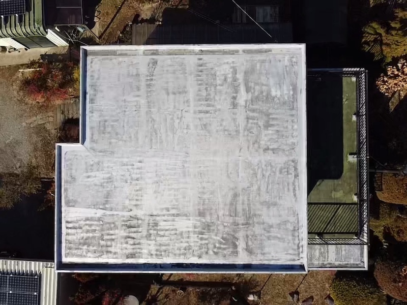 長野県松本市|フラットルーフ 防水工事の仕上げ トップコートを塗装