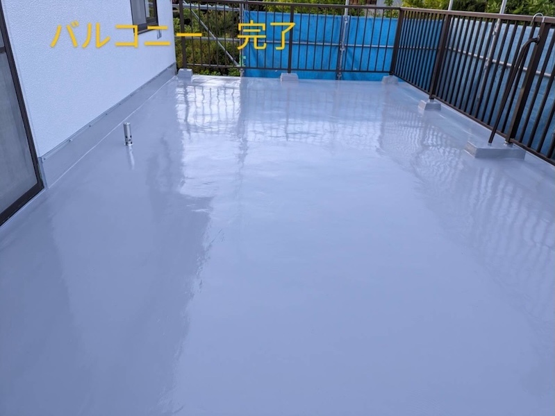 バルコニーウレタン防水工事 トップコートを塗って仕上げ!施工前と施工後|長野県松本市
